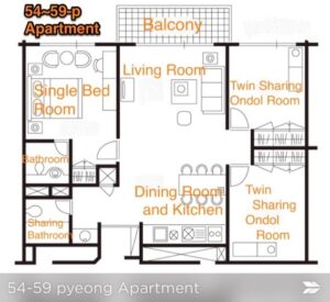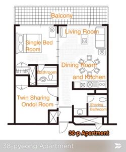 | Ondol Room – Twin Sharing | USD 465 | USD 450 | Washroom, Living room and Kitchen | |