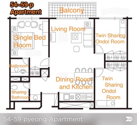 | Ondol Room – Twin Sharing | USD 560 | USD 530 | Washroom, Living room and Kitchen | |