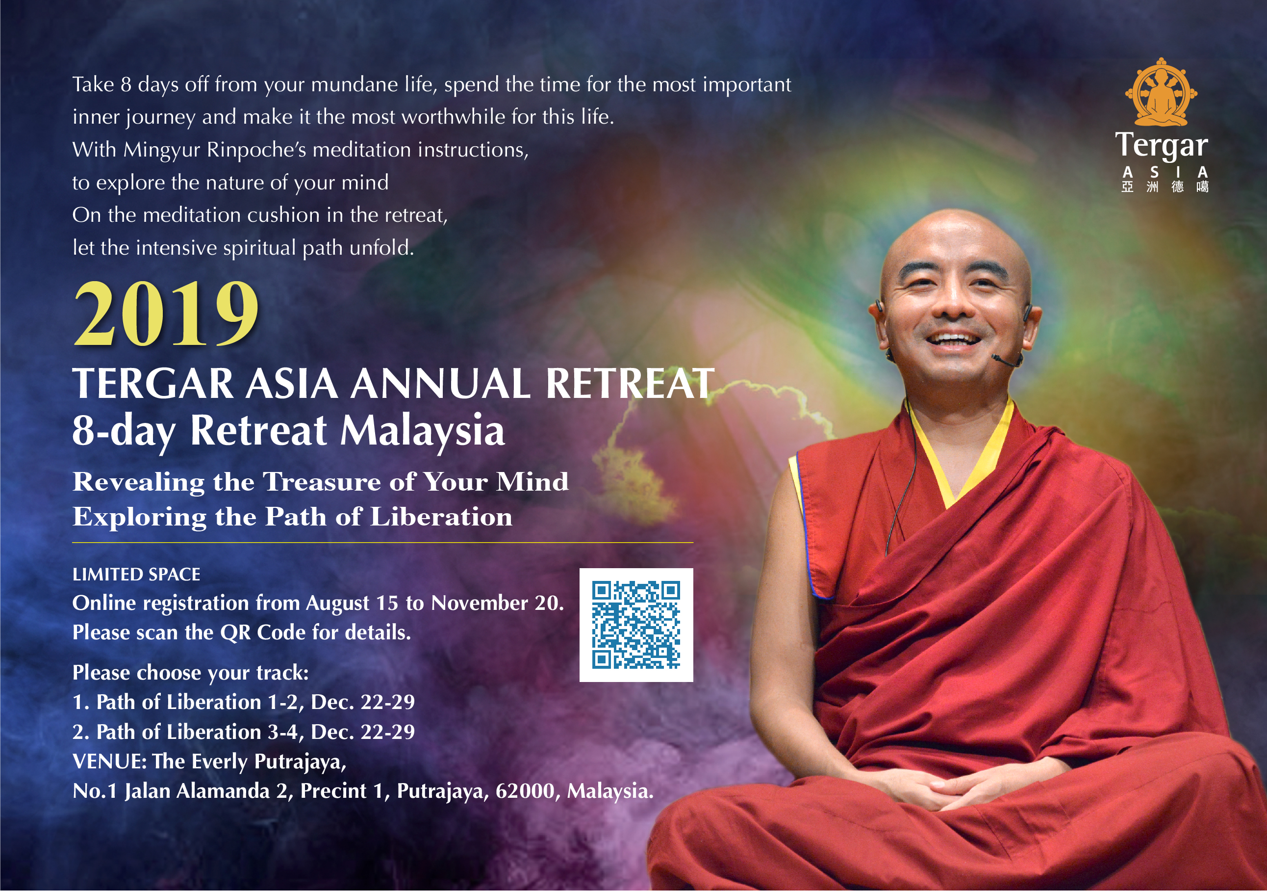 - Registration will start at noon on August 15, and the registration link will be posted beforehand on Tergar Asia’s social media platforms.